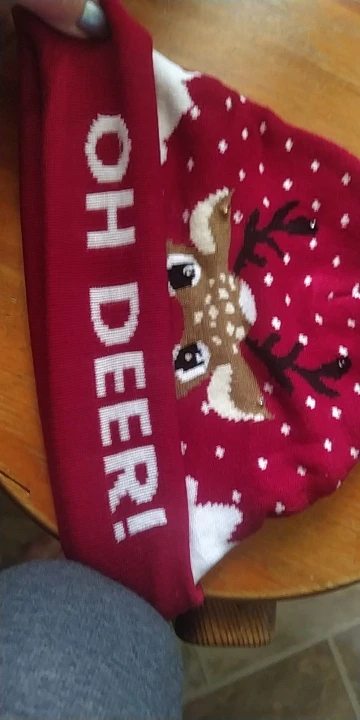 Очень мило и забавно, к сожалению, прибыл с очень большой задержкой. Используется для следующего Рождества. Акриловый материал, имеет помпоны. Жилет плотный, без косточек, без запаха. Имеет возможность освещения, 3 скорости светодиодов. Я думаю, что это не повторяется после стирки. Рекомендуется купить