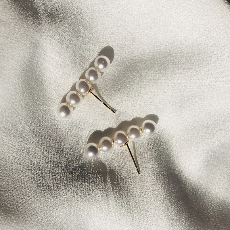 2021 Hangzhi летние винтажные пять жемчужин баланса луч одна линия шарики металлические серьги-гвоздики для женщин девушек ювелирные изделия вечерние Ринок