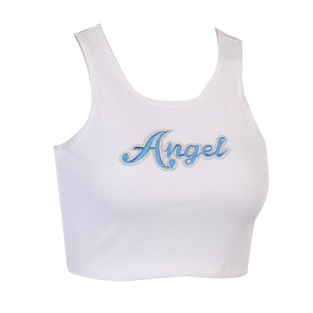 Женский жилет с вышивкой Angel Letter, короткий топ с круглым вырезом и коротким рукавом, Приталенный жилет в уличном стиле, повседневная майка для девушек, лето 2020