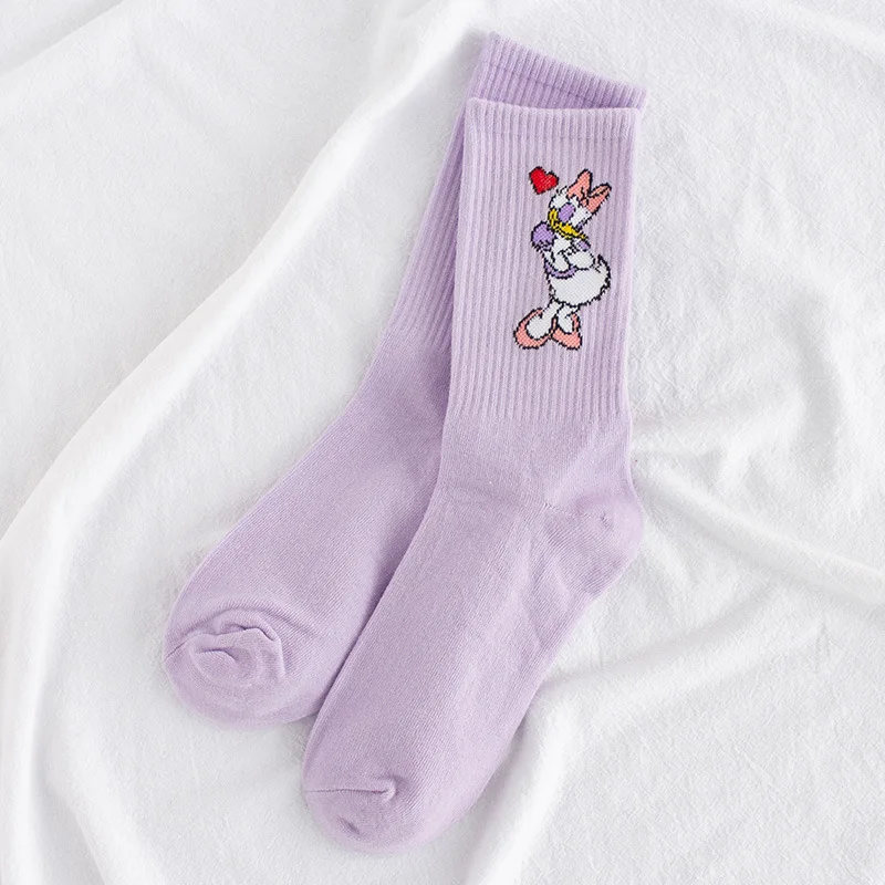 Милые и милые однотонные носки с мультипликационным принтом для девочек Disney, хлопковые носки без пятки с Микки и Минни, Дональд Дак, впитывающие пот, спортивные носки