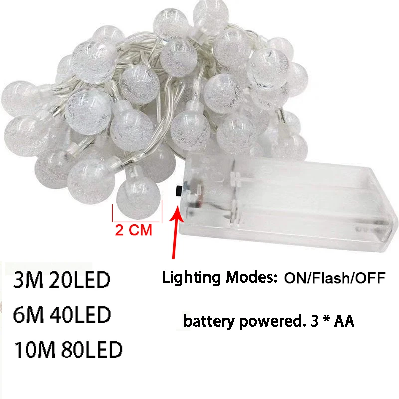 Новый 20/40/80 светодиодный S Хрустальная гирлянда из шаров огней 3 м/6 м/10 м Батарея Мощность светодиодный светящиеся гирлянды сад Рождественский Декор для отдыха на открытом воздухе