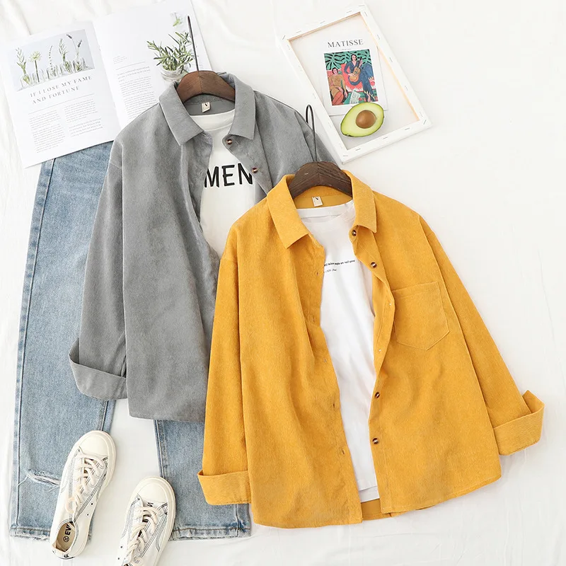 Вельветовая рубашка, женская блузка с длинным рукавом, весенняя, однотонная, свободная, в стиле бойфренда