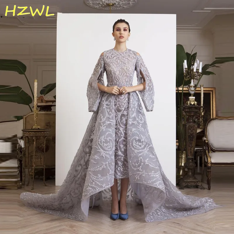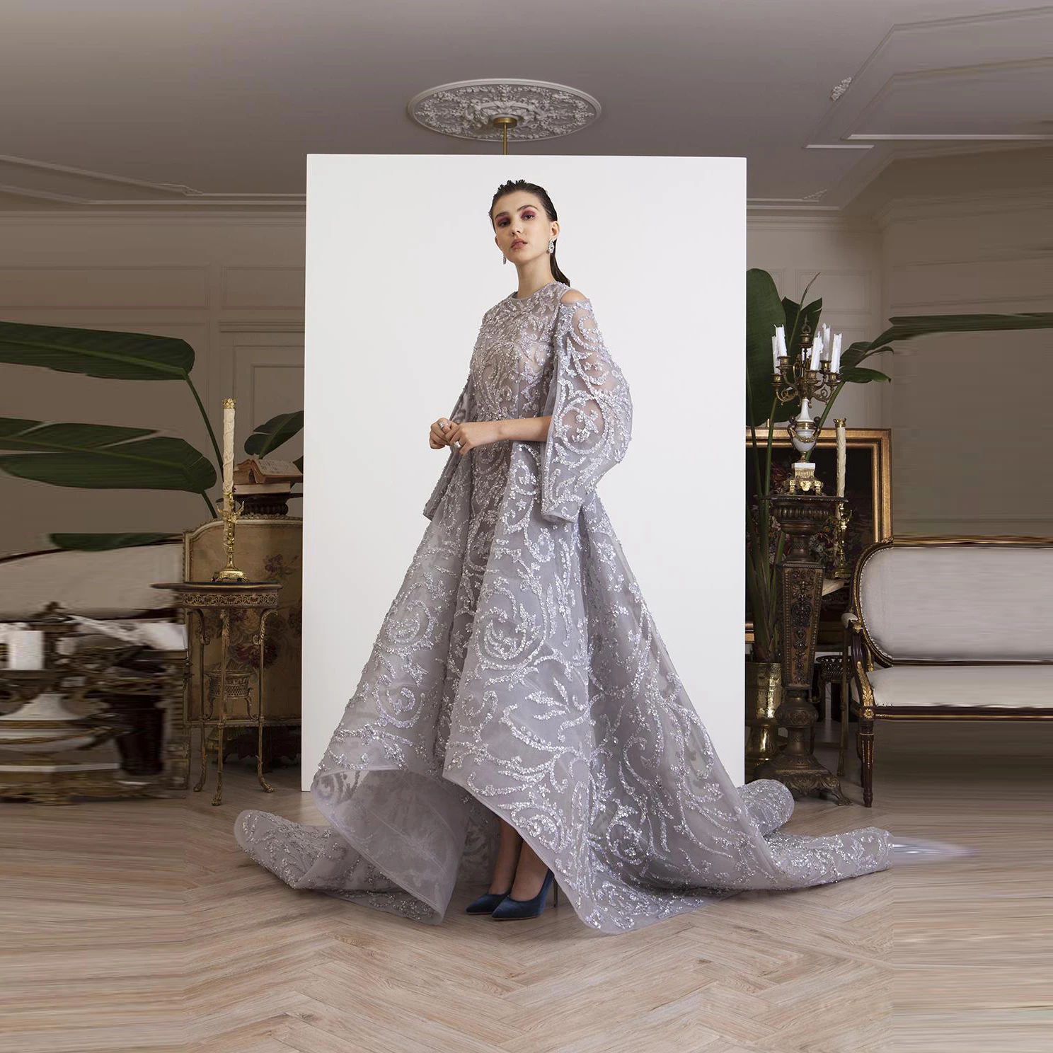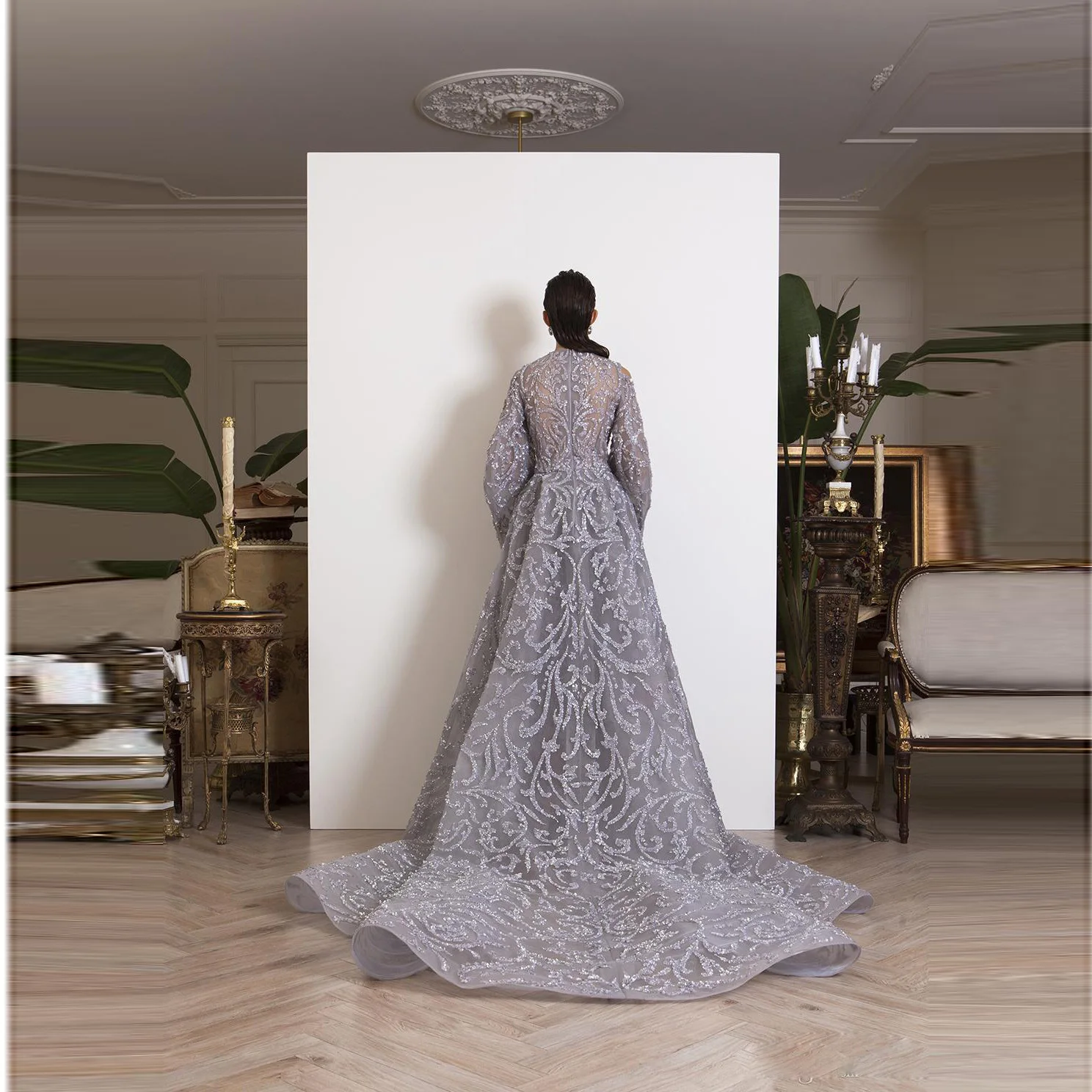 Серебристо-серое кружевное арабское свадебное платье Дубай с длинны...