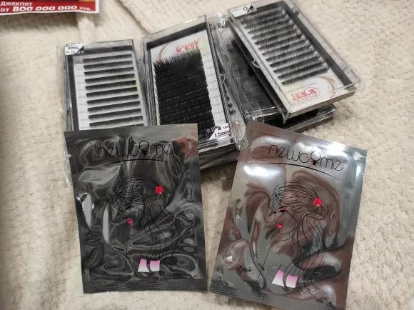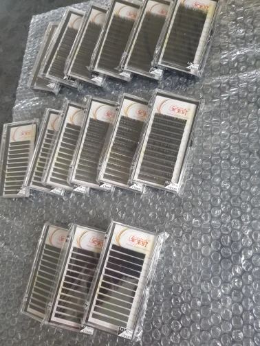 Заказ в екб пришёл быстро за полторы недели , несколько коробочек треснули при пересылке а так все норм , реснями довольна , берутся с ленты хорошо , пучок формируется на раз-два) вообщем советую )