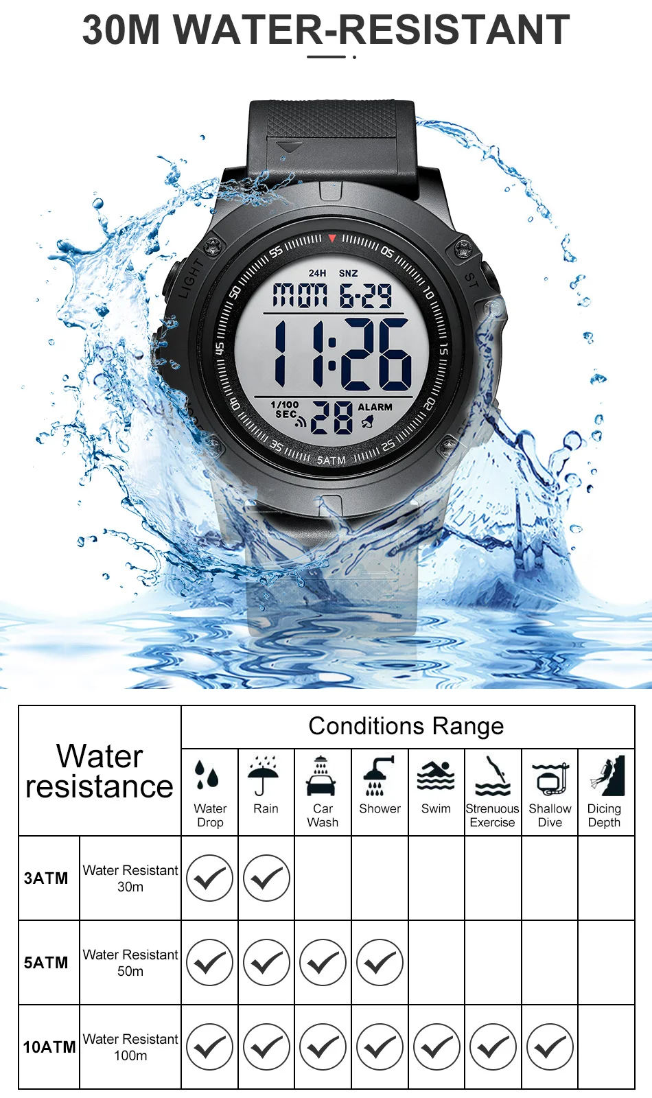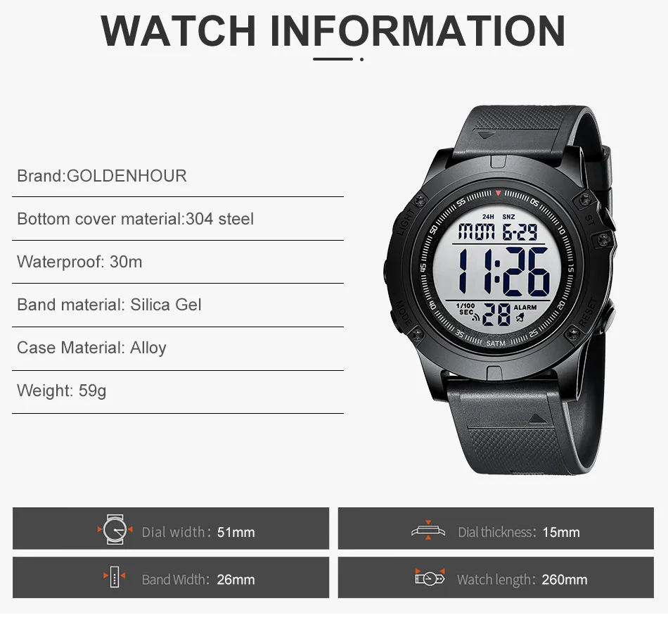 Часы мужские цифровые, военные, водонепроницаемые, спортивные