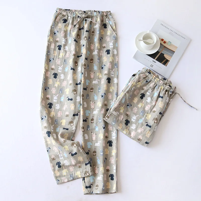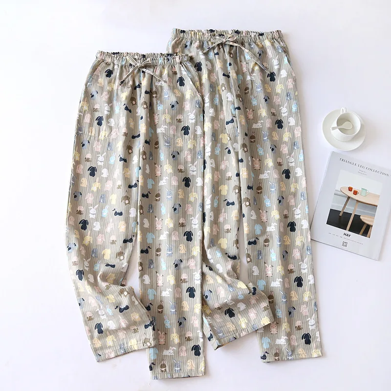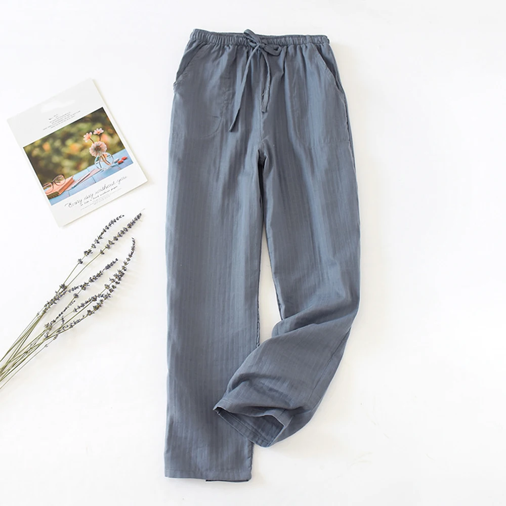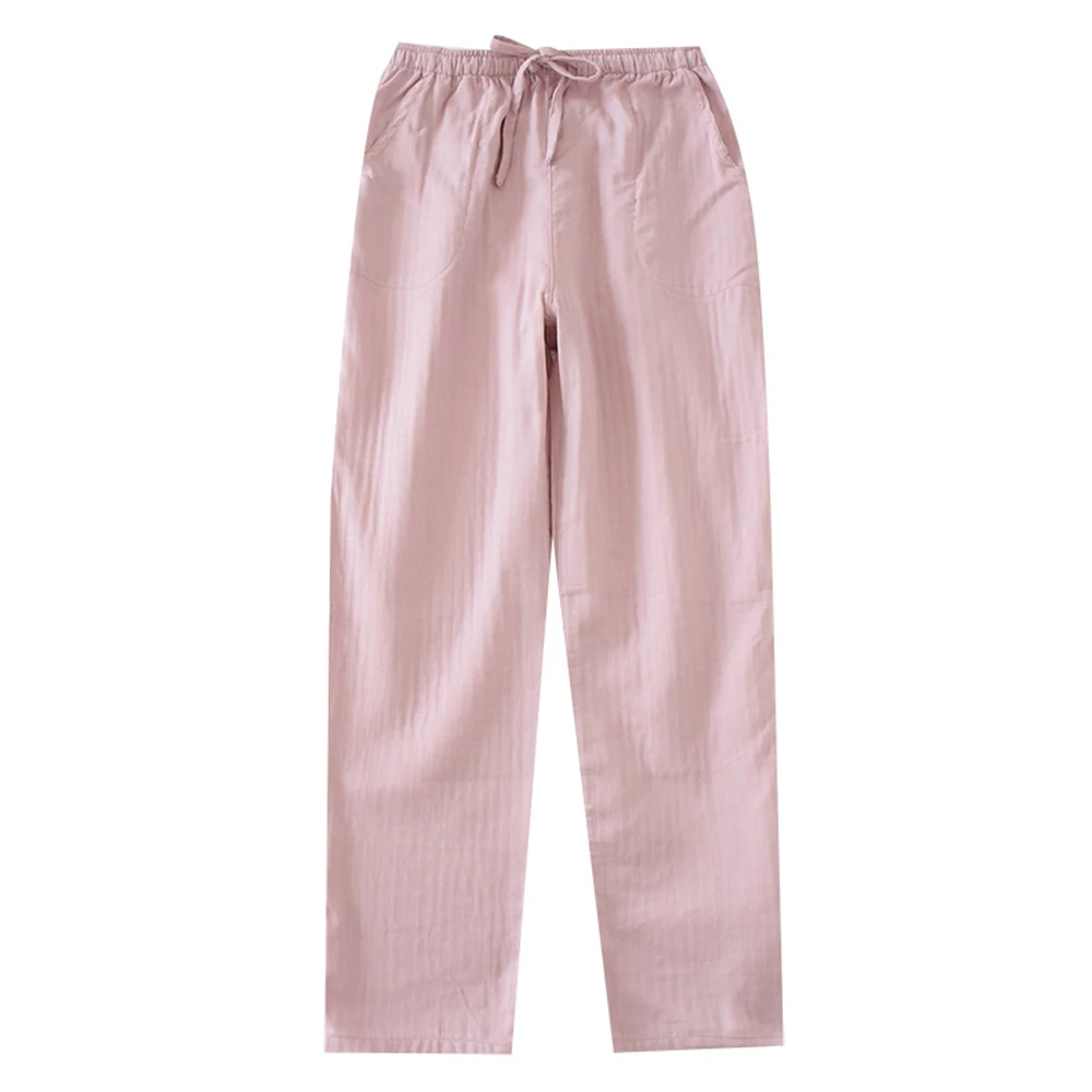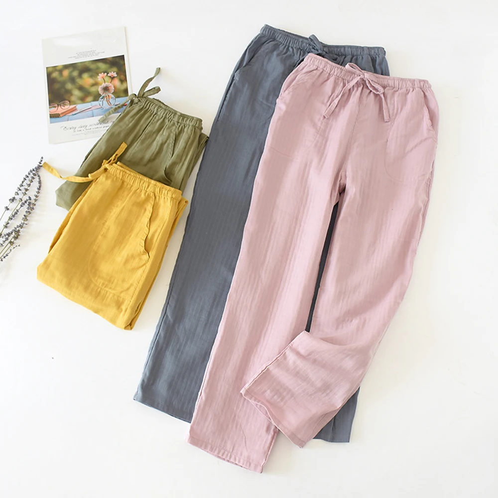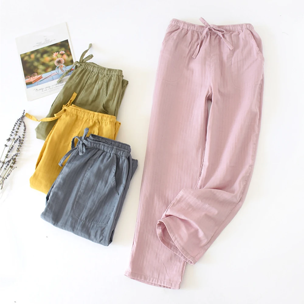 Штаны домашние пижама из тонкой ткани для пар, Хлопковые Штаны для сна с двойной сеткой, свободные спортивные штаны, одежда для отдыха на шнурке для мужчин и женщин, осень