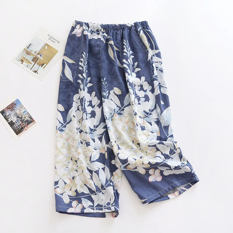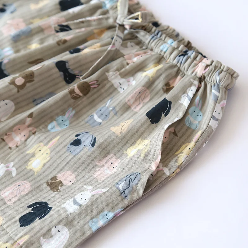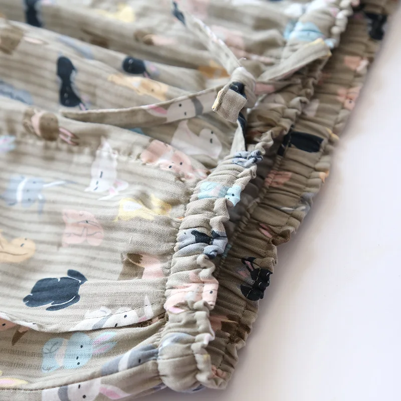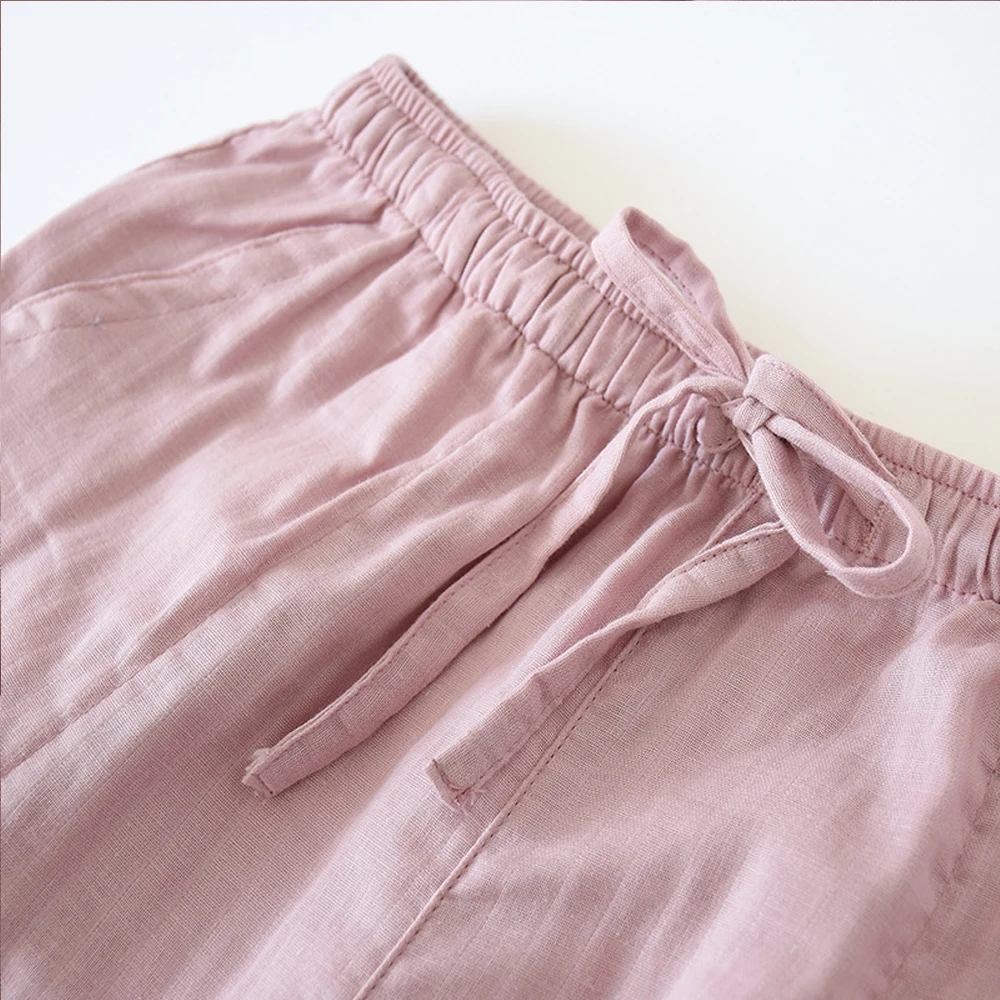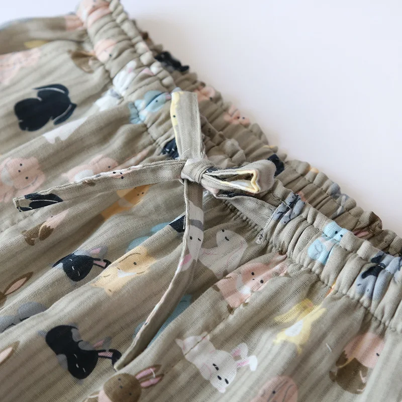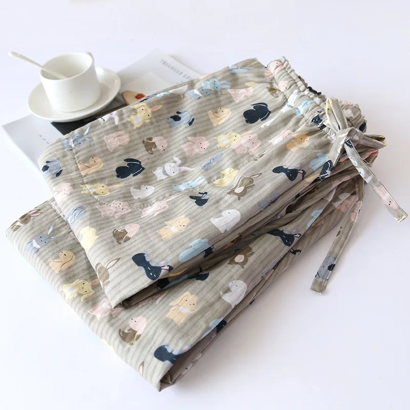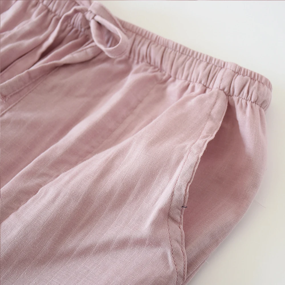 Штаны домашние пижама из тонкой ткани для пар, Хлопковые Штаны для сна с двойной сеткой, свободные спортивные штаны, одежда для отдыха на шнурке для мужчин и женщин, осень