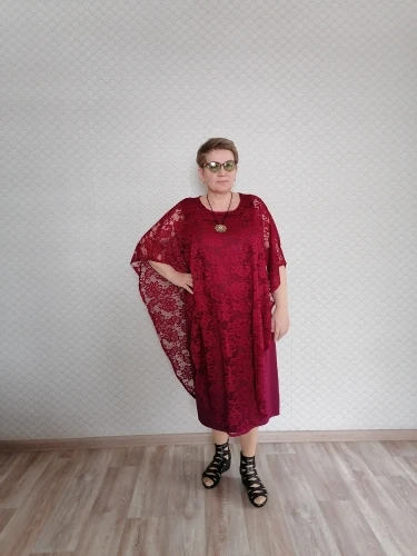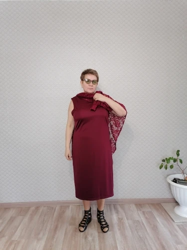 Красивое платье(без молнии). Цвет яркий бургун. Можно заказывать по своим меркам. Я взяла на размер больше, поэтому платье свободное, можно чуток ушить, но под накидкой особо не видно. Длина до середины икры. Мои параметры: рост 158, ог 107, от 92, об 107. Оригинальная вещь. Рекомендую. Фото чуть позже.
