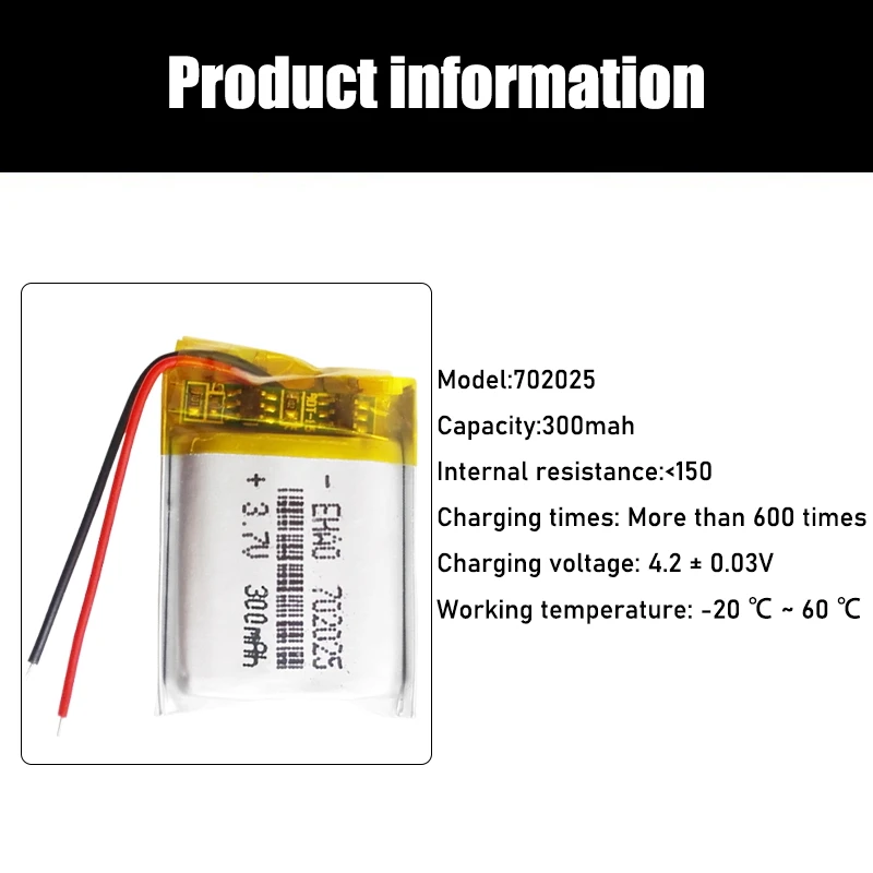 1-2x702025 300 мАчЛитий-полимерныйАккумуляторы