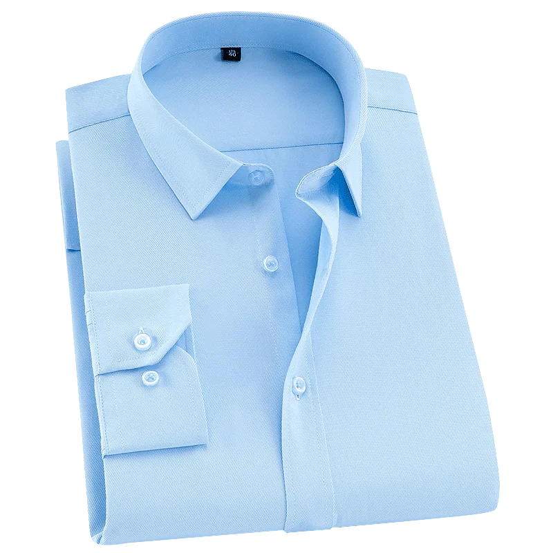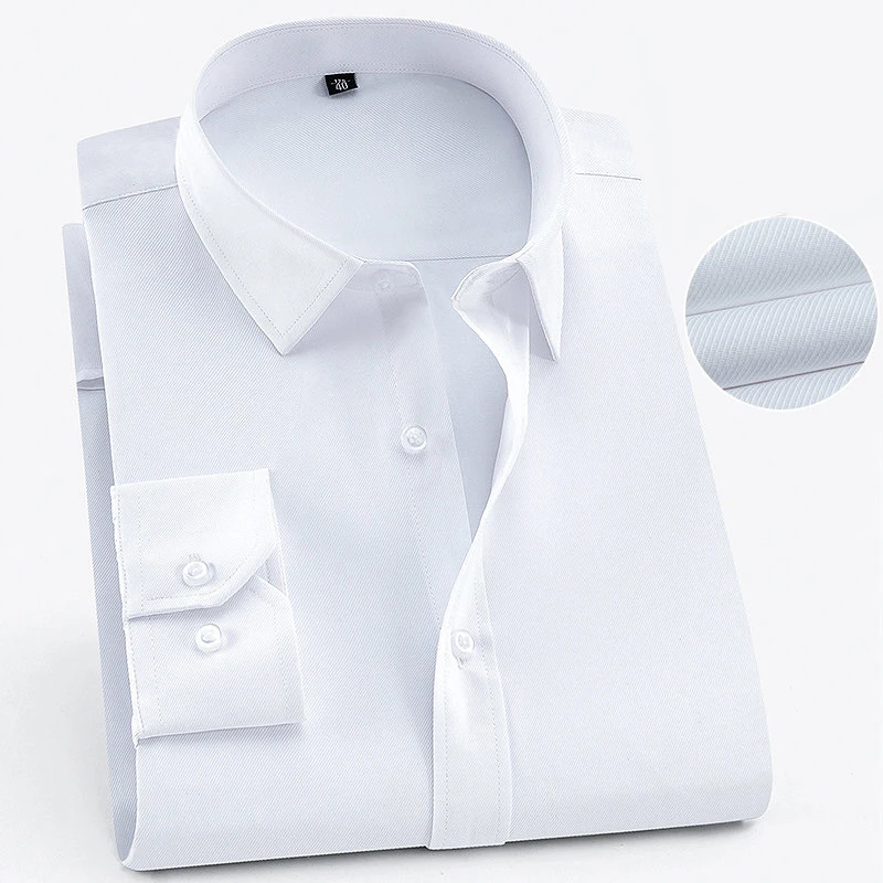 Рубашка мужская приталенная деловая с длинным рукавом, формальная из Твила, без нагрудного кармана