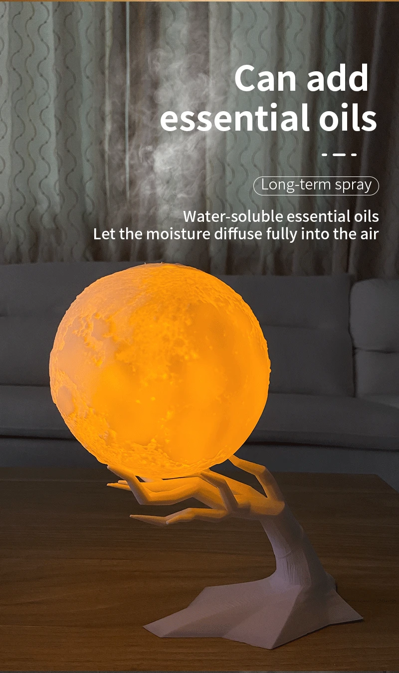 Светодиодный ночник 880 мл с имитацией 3D Луны, ультразвуковой увла...