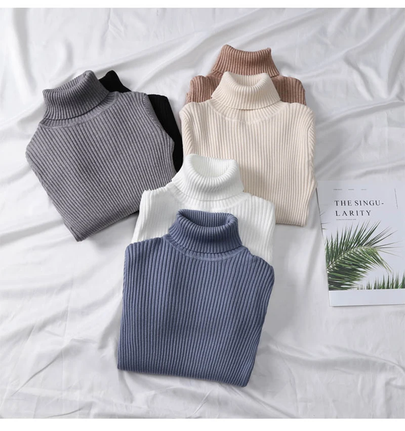 Зимний женский вязаный свитер с высоким воротником, Осенние повседневные облегающие свитера, пуловер, женский эластичный свитер с длинным рукавом