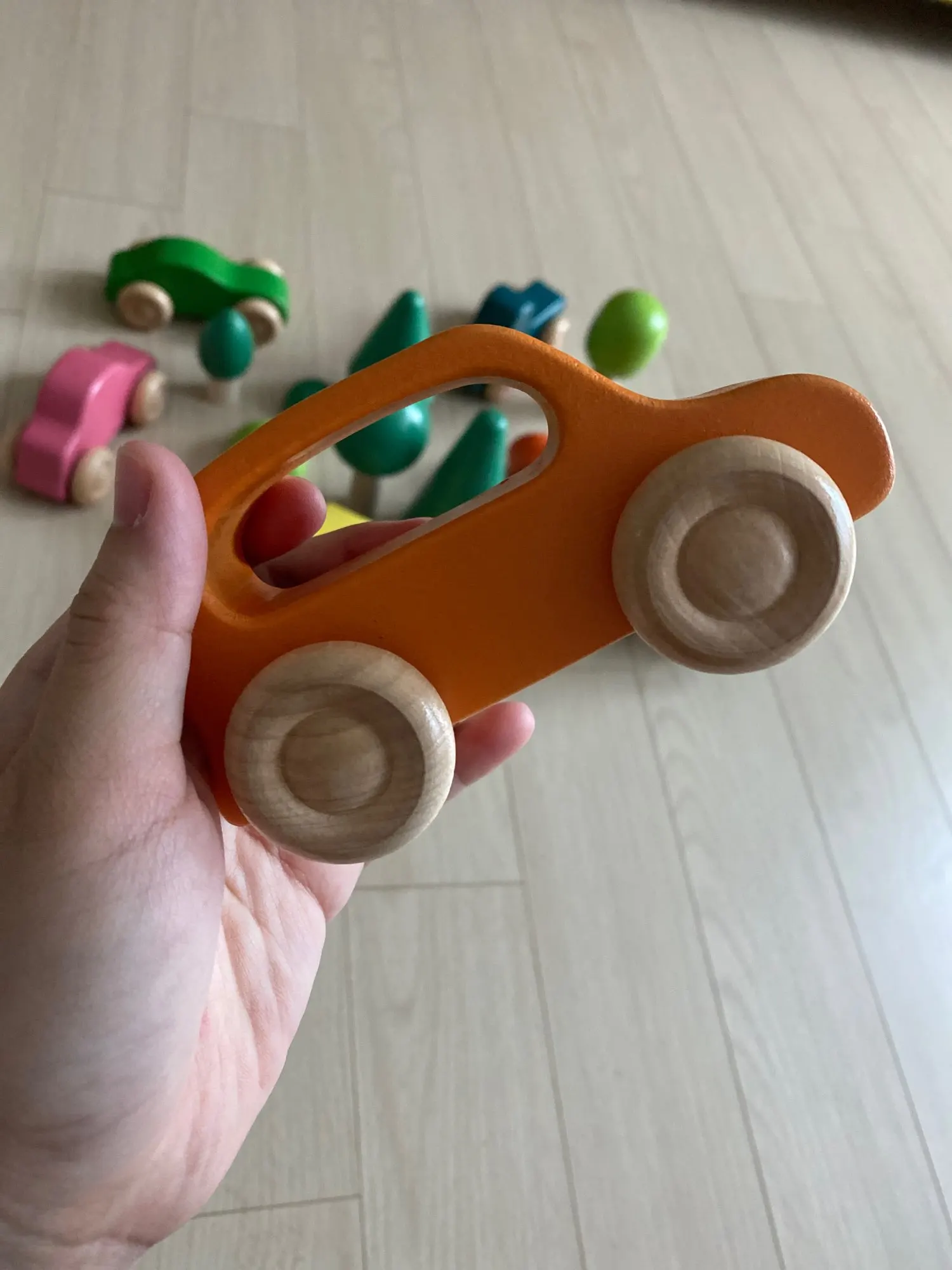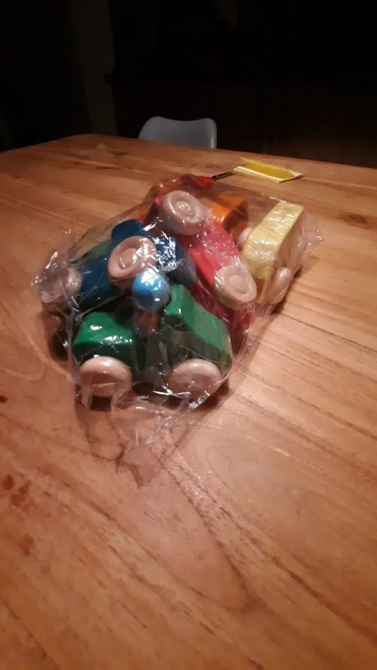 Как на изображении. Очень милый. Выглядит как оригинальный бренд, но вы больше не можете видеть Текстуру Дерева через краску, как у Grimm's. Тем не менее, это хорошее соотношение цены и качества.