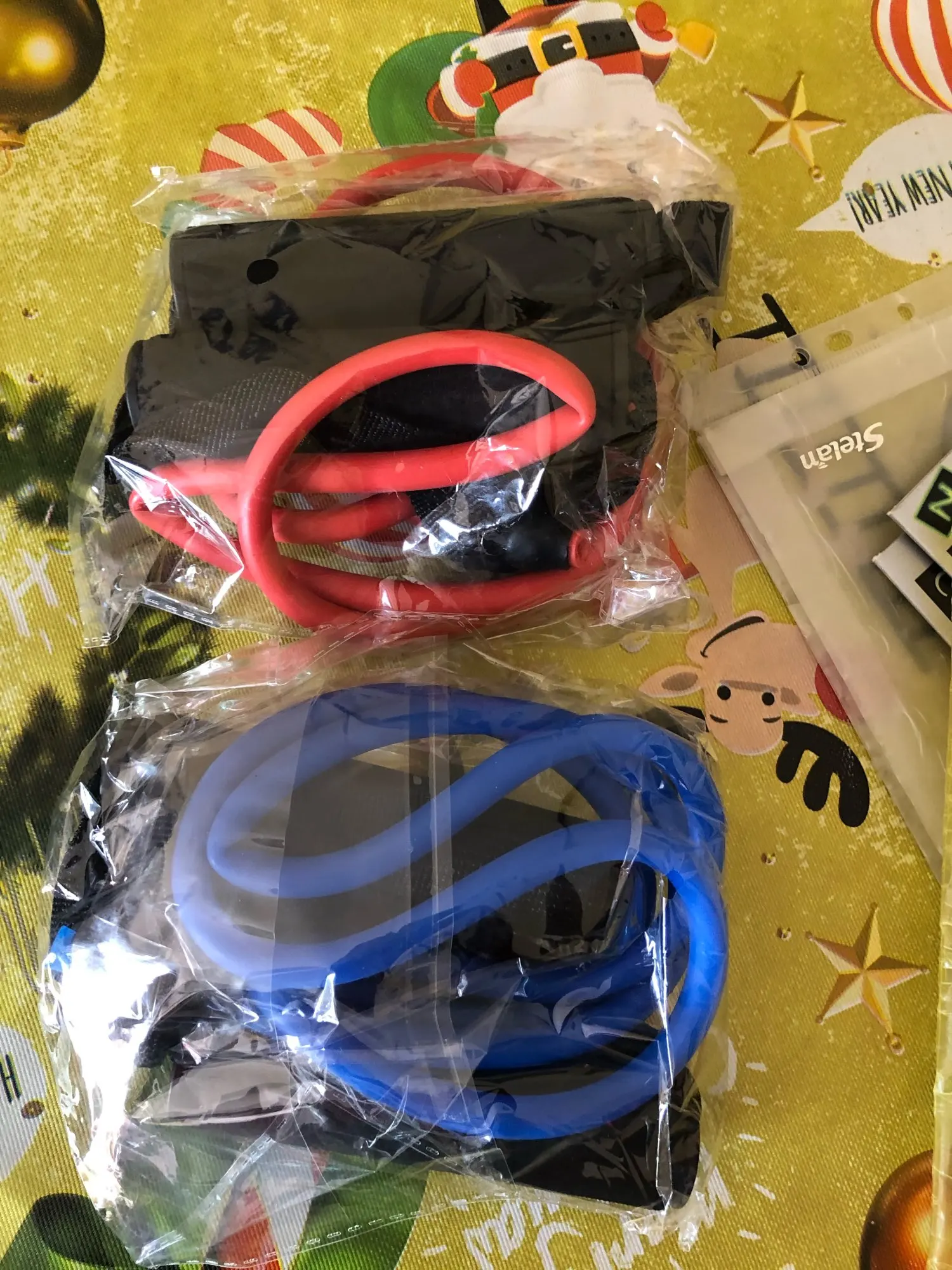 Доставка быстрая, в Украину меньше месяца, и это с учётом, что продавец отправил товар день на 5-6. В целом лента неплохая, ручки мягкие, закреплены нормально. Но, по личной невнимательности выбрала не ту резинку, хотела синюю, а заказала зелёную. На картинке в заказе невнимательно посмотрела, там зелёный выглядит как голубой, я и заказала голубой, оказалось это зелёный. Написала об этом продавцу, он сказал что отправит синюю резинку в замен на оценку 5 звёзд, я была только за! Продавец приятный, ответил быстро, вежливо. Но резинка пришла зелёная, жаль что продавец не помог, как обещал. Зелёная лента слишком мягкая, заказывала мужу, но она слабая даже для меня, поэтому скорее всего будет просто висеть без дела. Но, думаю, в этом только моя вина. Будьте внимательны при оформлении заказа.