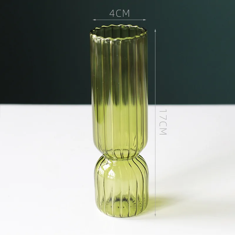 Скандинавская стеклянная ваза для цветов с вертикальными полосками,...