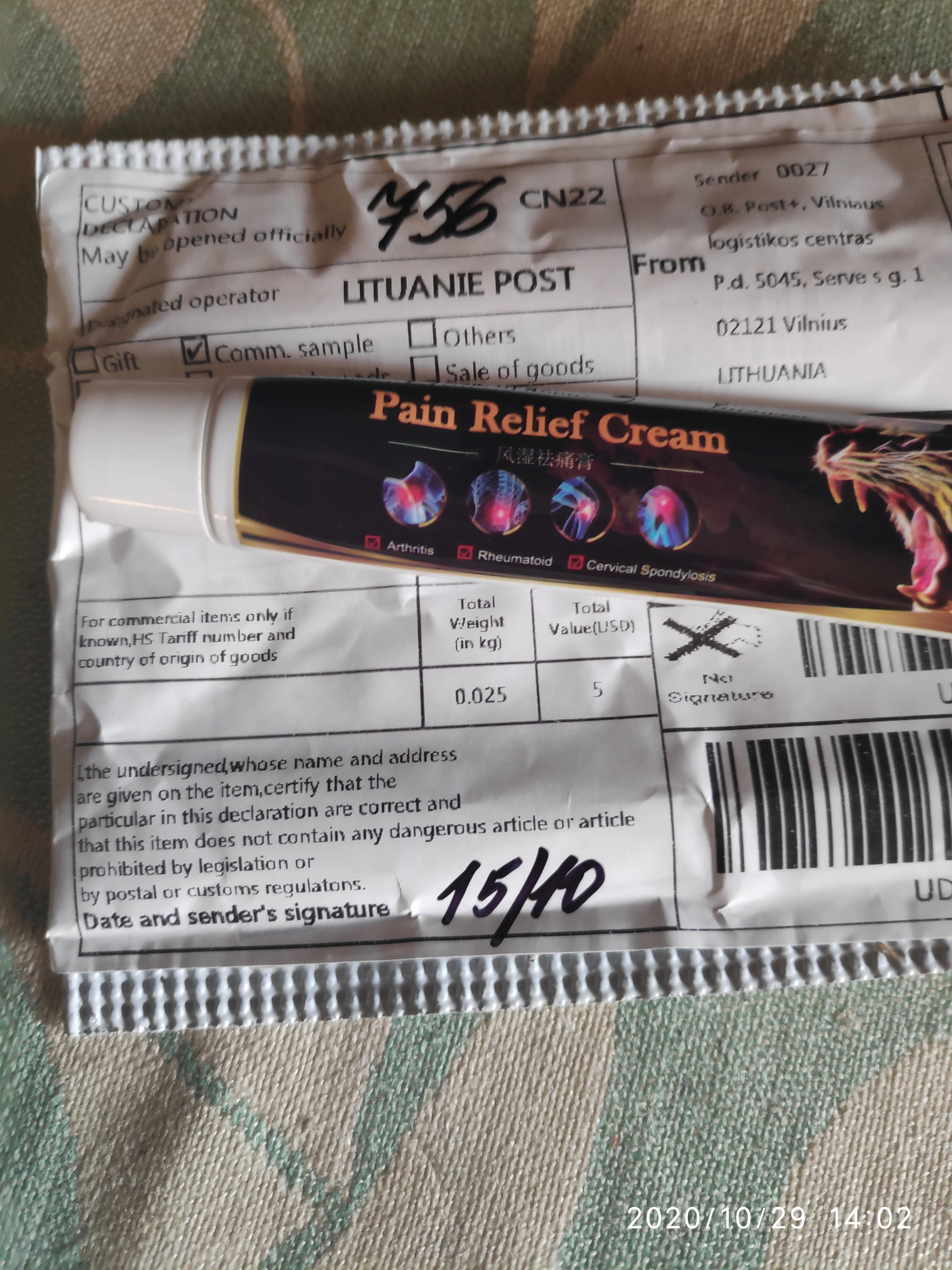 Заказ пришёл без особой задержки в хорошей упаковке. Без отслеживания. К качеству товара претензий нет. Крем реально помагает. Проверено. Заказываю не первый раз. Продавцу-спасибо, успехов в бизнесе и мои рекомендации.