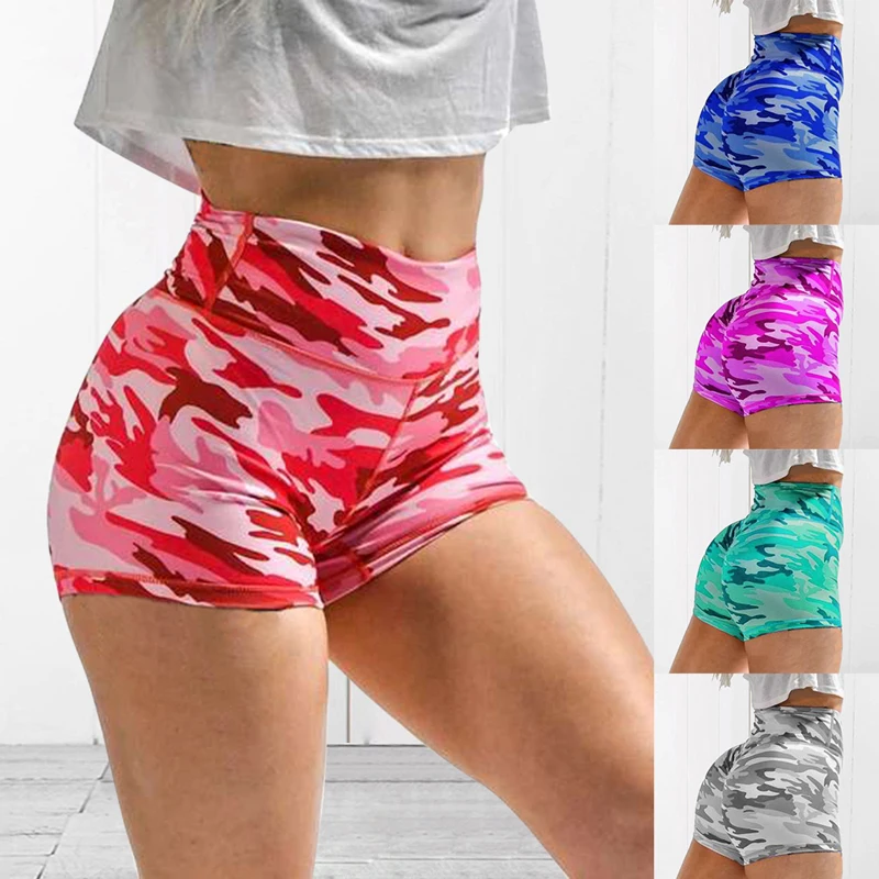 Женские спортивные шорты для бега и йоги, камуфляжные шорты для йог...