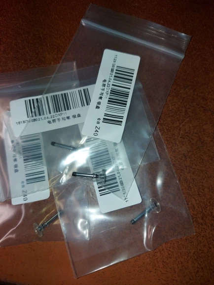 Эти "подушечки" лучше, чем силиконовые/резиновые, которые идут изначально в комплекте со стилусом. Советую сразу же их дозаказывать. Все целые, резьбы исправны, вкручиваются хорошо, не выпадают. Экран телефона (редми 9) реагирует хорошо, иногда требуется нажатие немного сильнее. Приехали вместе со стилусом +-18-22дня