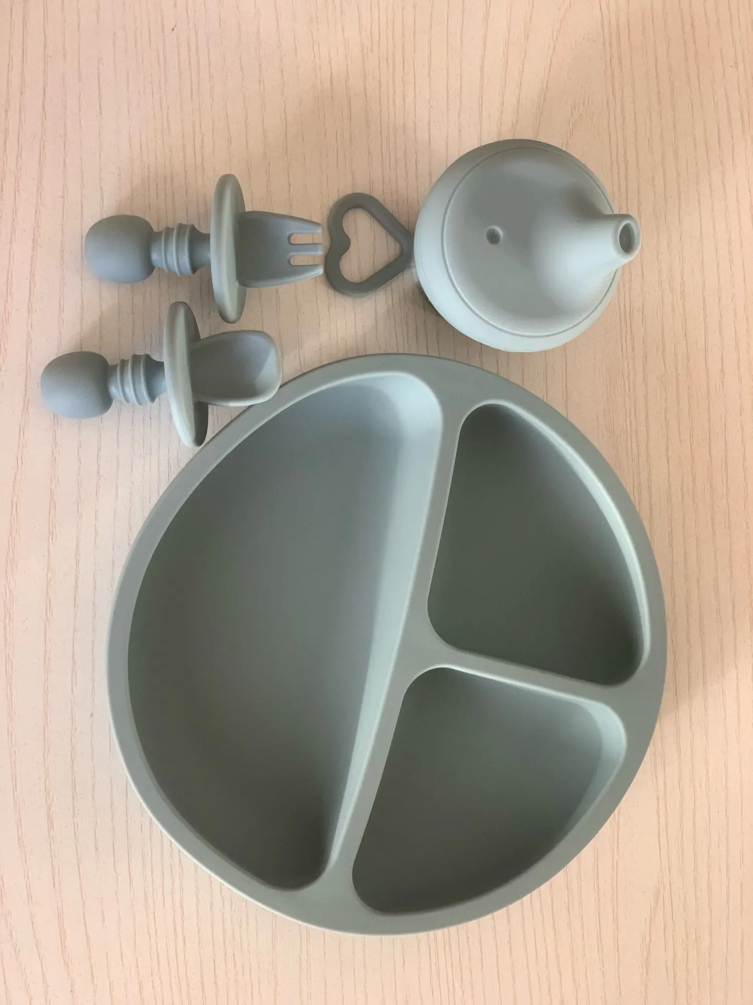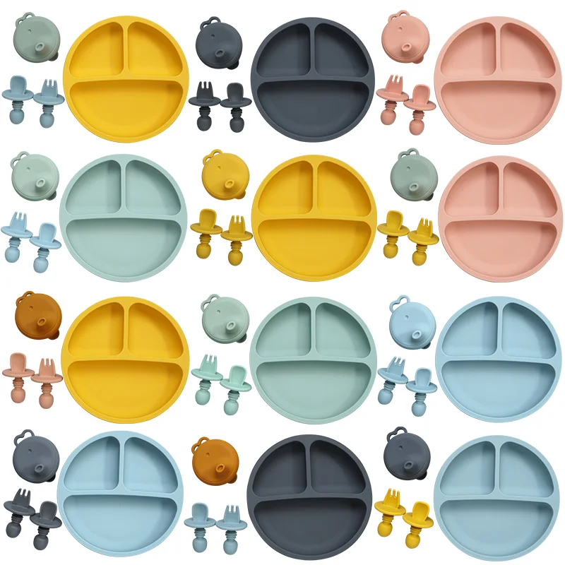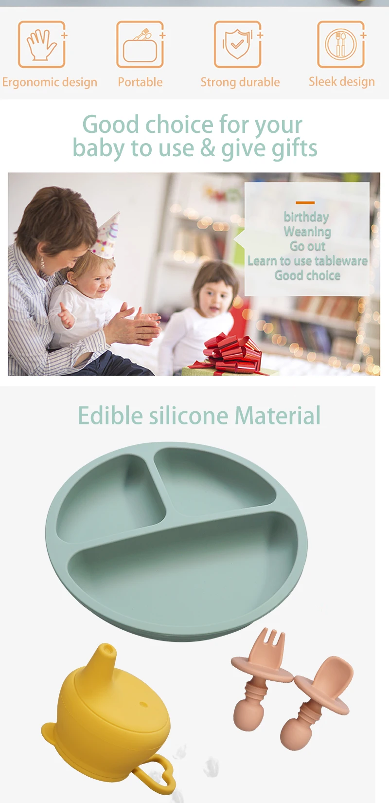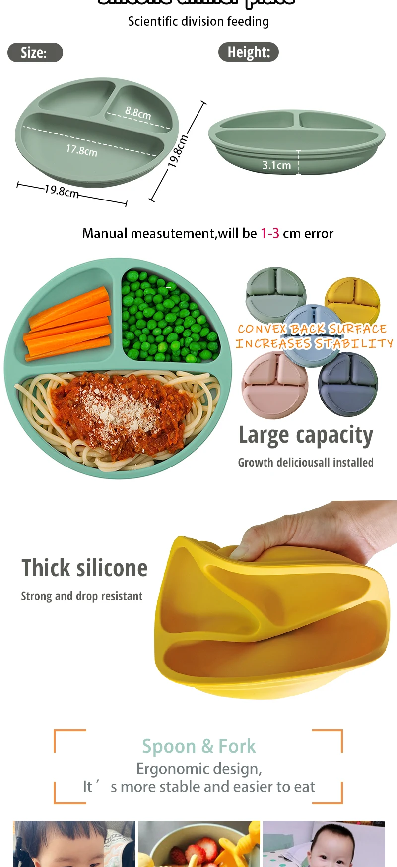Силиконовая тарелка-вилка для кормления малышей, водонепроницаемая, с силиконовой крышкой