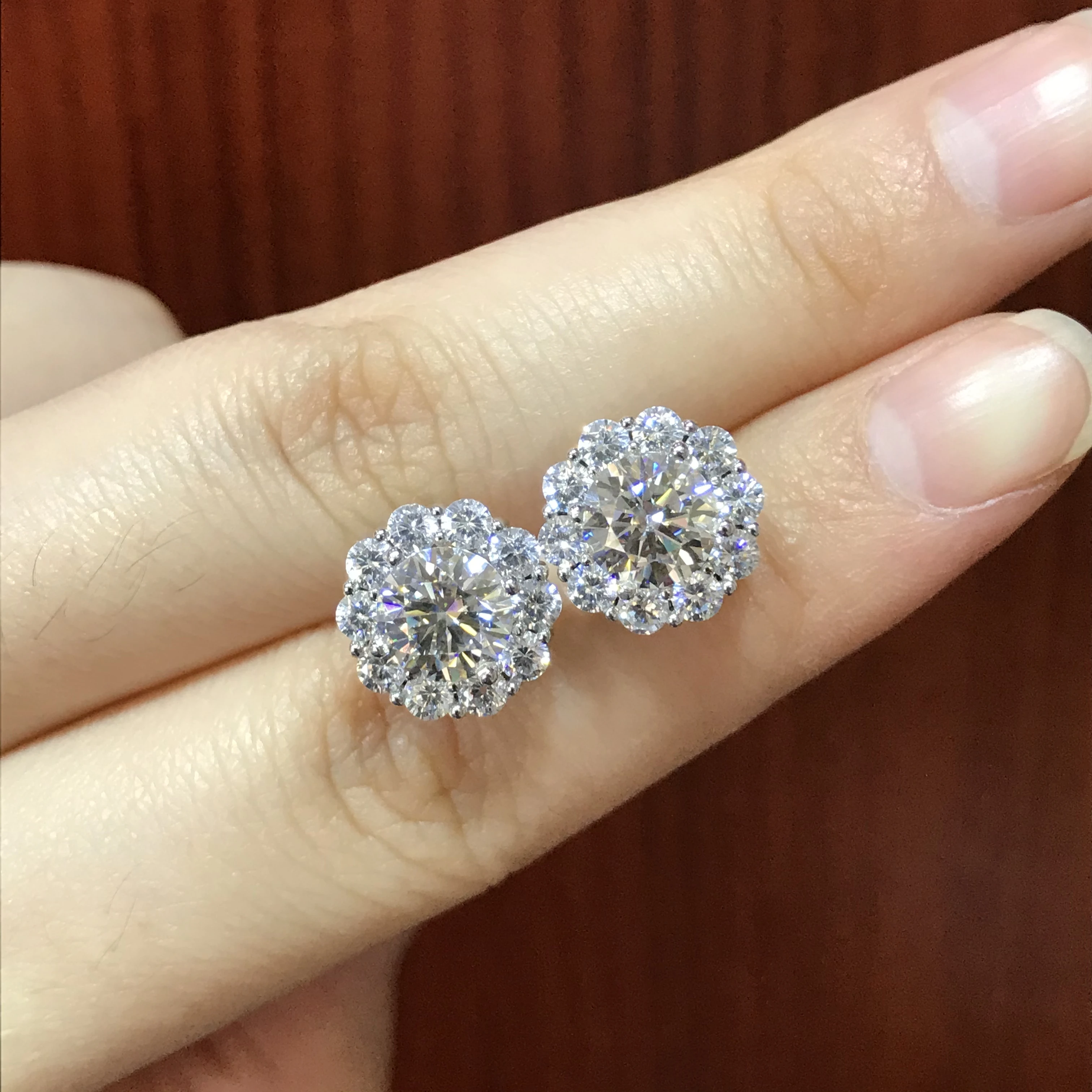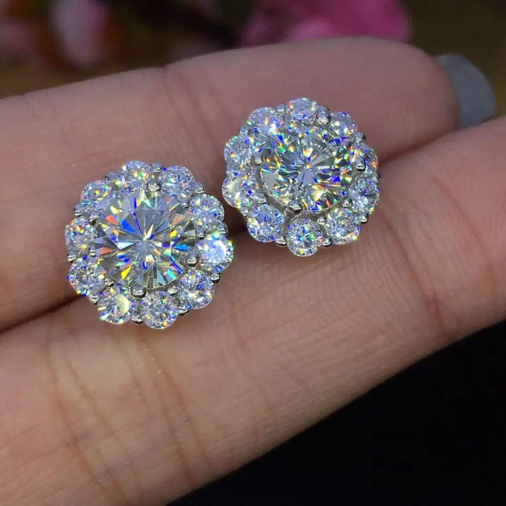 Серьги с круглым муассанитом из поэзии еврейского магазина, Ювелирное Украшение с бриллиантами на 2,00 карата, прошли испытание, Ювелирное Украшение для девушки