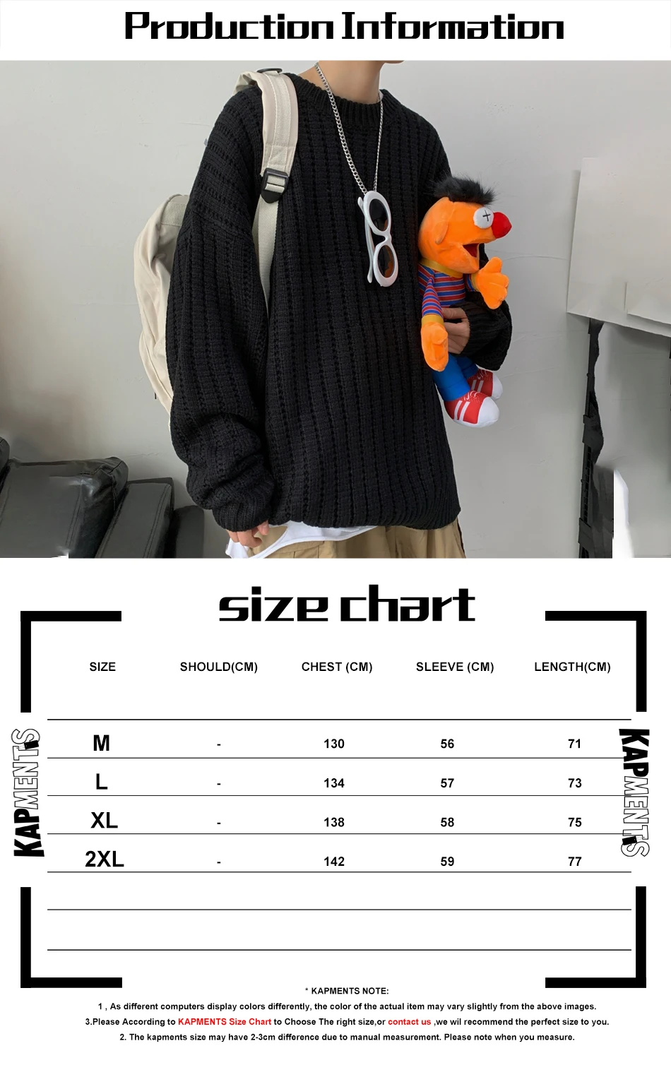 Номер моделиKAPMENTS Japanese Streetwear Sweaters Pullovers For Men