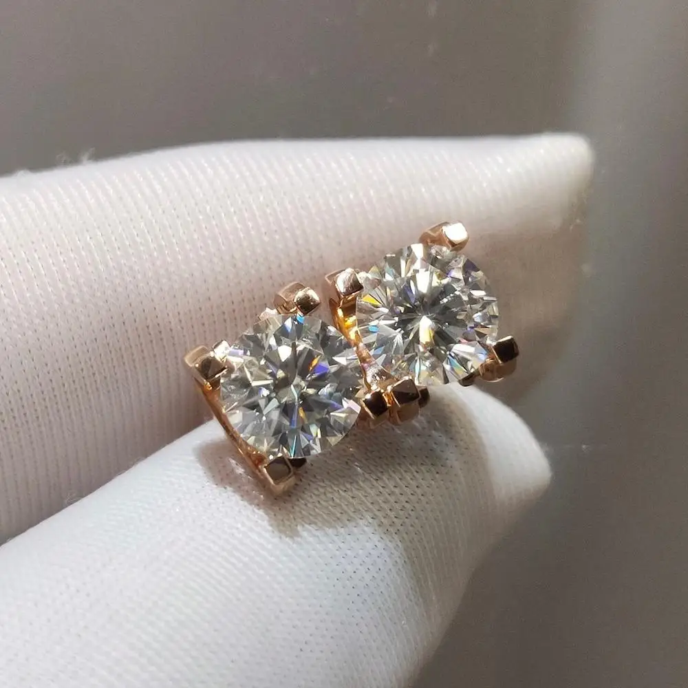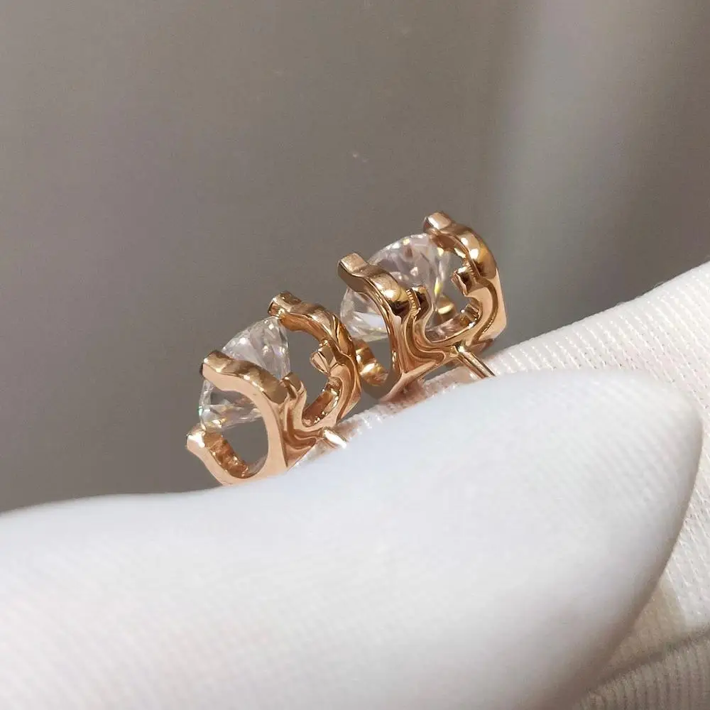 Серьги-гвоздики из розового золота, 18 К, 4 когтя