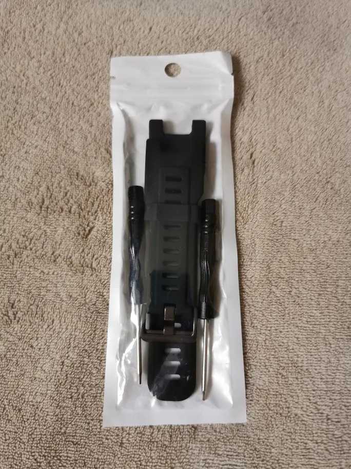 Получил ремешок. Покупкой очень доволен. Посылка не помята, всё аккуратно упаковано. Ремешок эластичный, без повреждений. В комплекте две отвертки. Товар шел 2 недели, что, считаю, очень быстро для АлиЭкспресс.