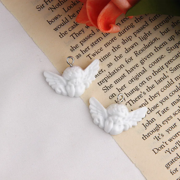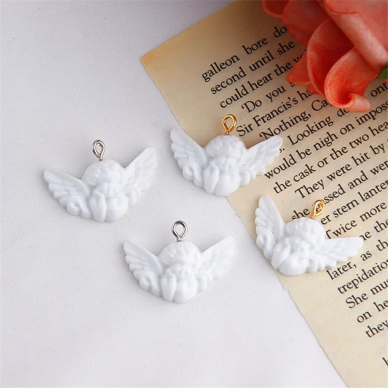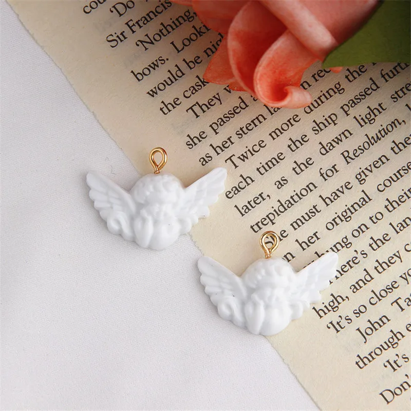 Мини-подвески из смолы с белыми крыльями ангела для ювелирных изделий ручной работы, ожерелья, подвески, серьги, брелок, аксессуар, P97, 10 шт.
