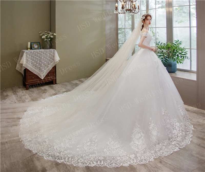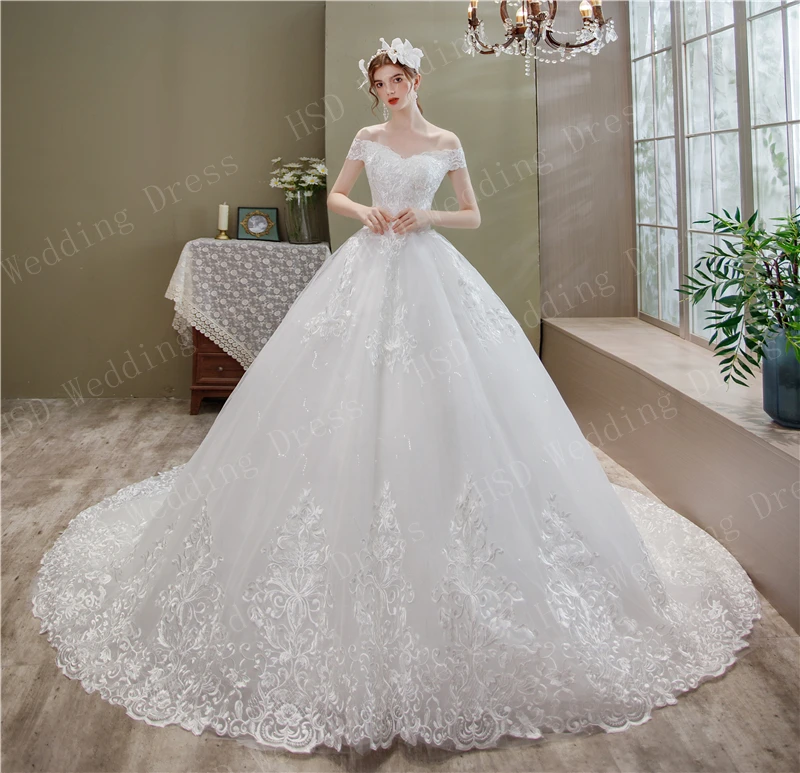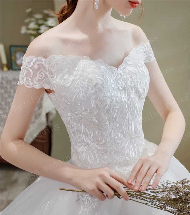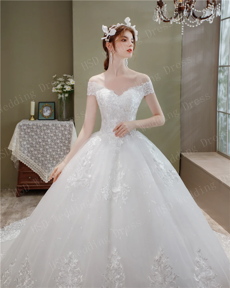 Женское свадебное платье с открытыми плечами, элегантное кружевное платье с длинным шлейфом и V-образным вырезом, лето 2021