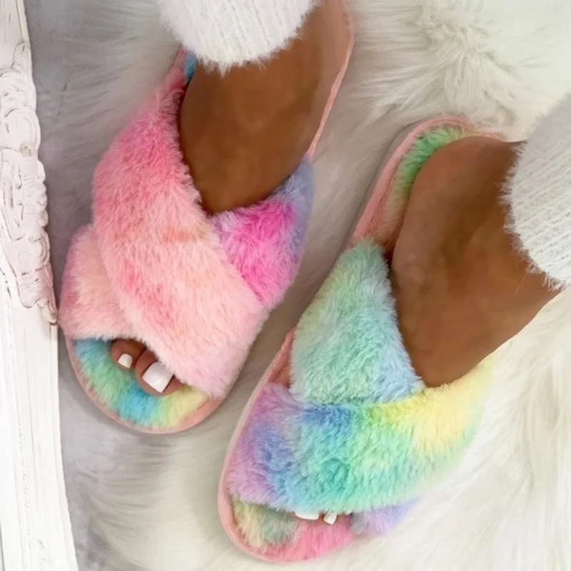Классический дизайн, женские зимние меховые тапочки, пушистые искусственные меховые шлепанцы, модная обувь для дома, женские шлепанцы