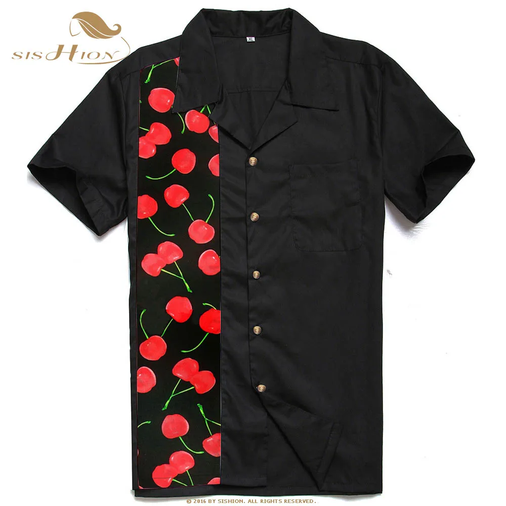 L-2XL размера плюс Мужская рубашка ST110 с коротким рукавом черный красный рокабилли Хлопок повседневные боулинг рубашки для мужчин camisa masculina