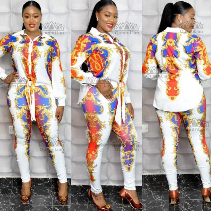 Африканская одежда для женщин, модная рубашка, топ и эластичные брюки, костюм, шифоновое платье XFTZ08 #