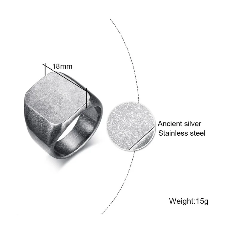 Окисленное тонированное квадратное простое кольцо-значок для Мужчин...