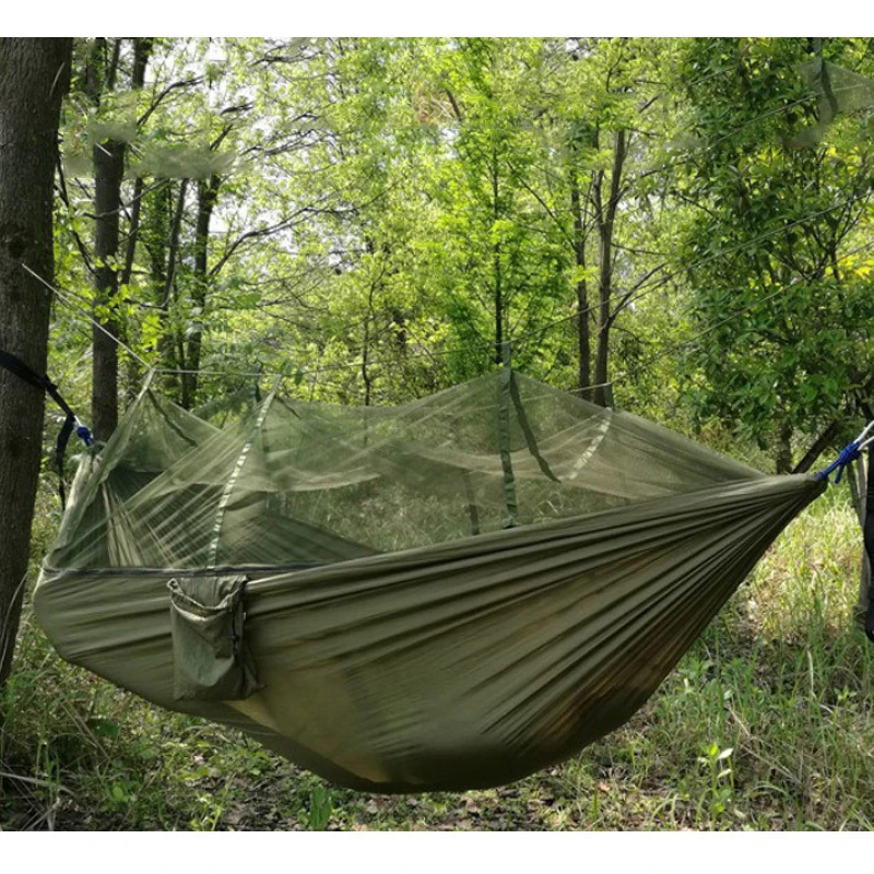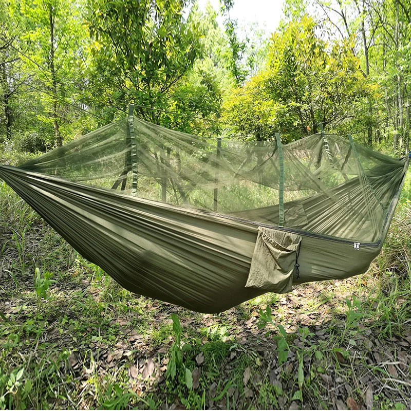 Гамак для кемпинга, подвесная кровать из нейлоновой ткани, с москитной сеткой, для охоты, кемпинга