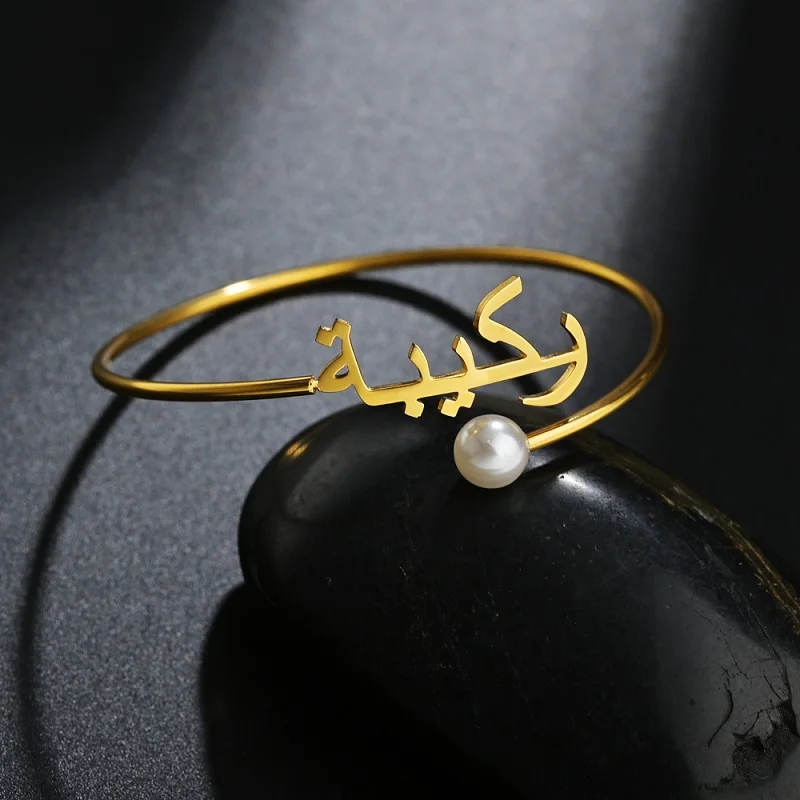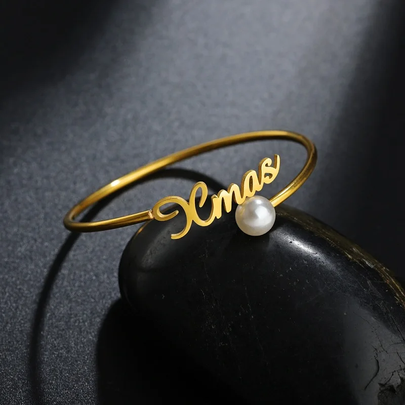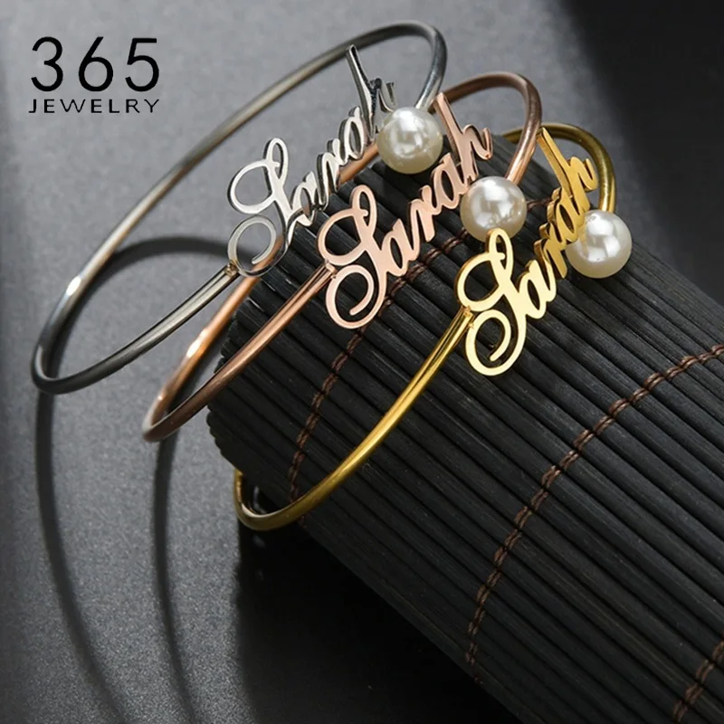 Модный браслет из нержавеющей стали на заказ, персонализированный браслет с табличкой с буквами и жемчугом для женщин и девушек, ювелирные изделия, подарок на свадьбу и вечеринку