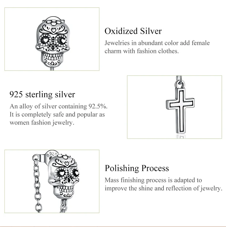 Материал:S925 + окисленное сереброРазмеры: 1,5*0,9 см, 2,4*1,4 смОписание:Элемент черепа в сочетании с крестом и мастерством создает счастливую атмосферу Хэллоуина.