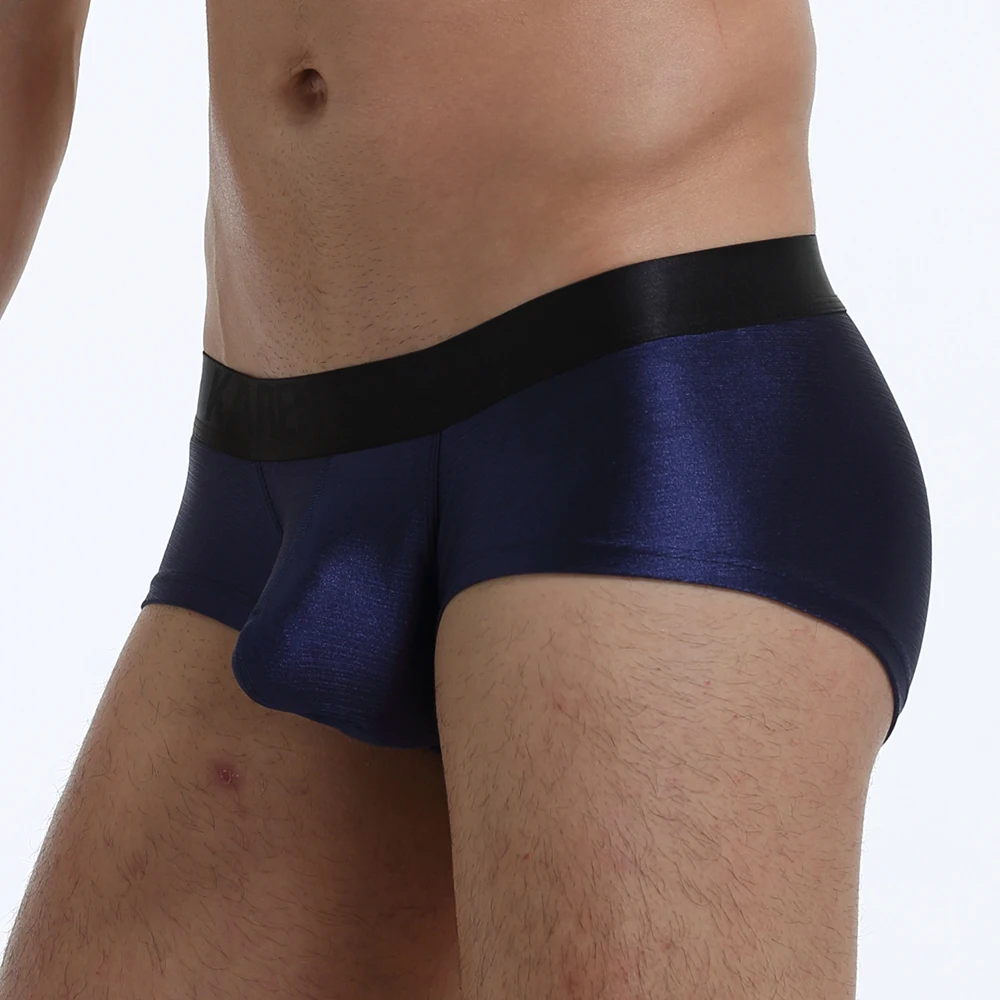 Сексуальные мужские шелковые яркие блестящие мини-боксеры для плавания, мужские трусы с выпуклой сумкой, модные атласные купальники, нижнее белье