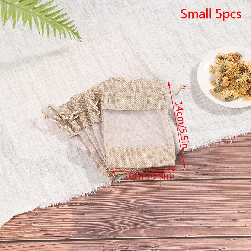 Джутовые мешки из органзы, 5 шт.лот, мешочек на шнурке для свадебве...