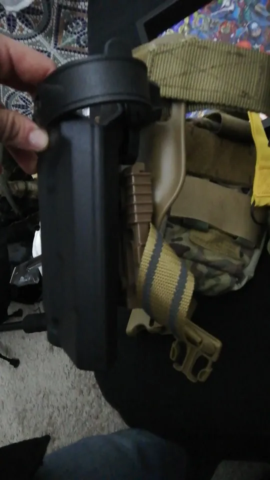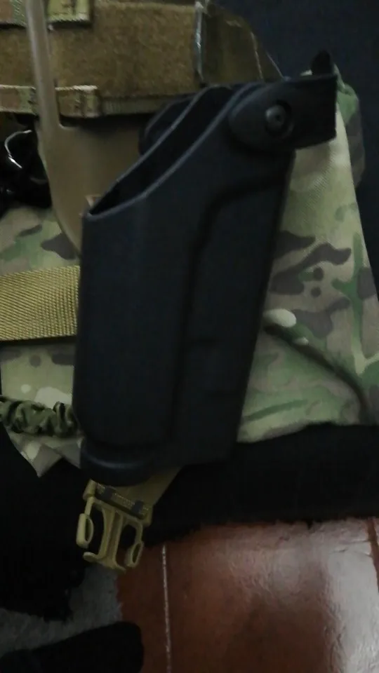 Как они сообщают об этом, хотя вы должны надеть ремешок на бедро. Вы выдавливаете много ремешков на бедрах, они прилипают к вашей ноге. Я рекомендую совместимые пистолеты SAFARILAND, потому что у меня есть кобура Cytac для hi capa, и мне нужно было купить специальный винт для этой системы.