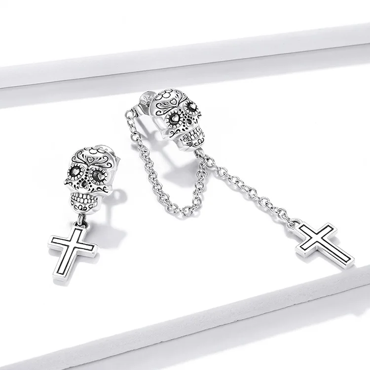 Женские серьги-гвоздики в виде черепа, из серебра 2020 пробы