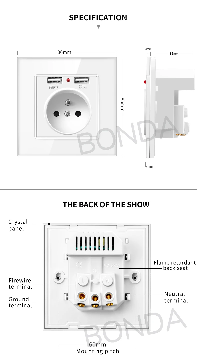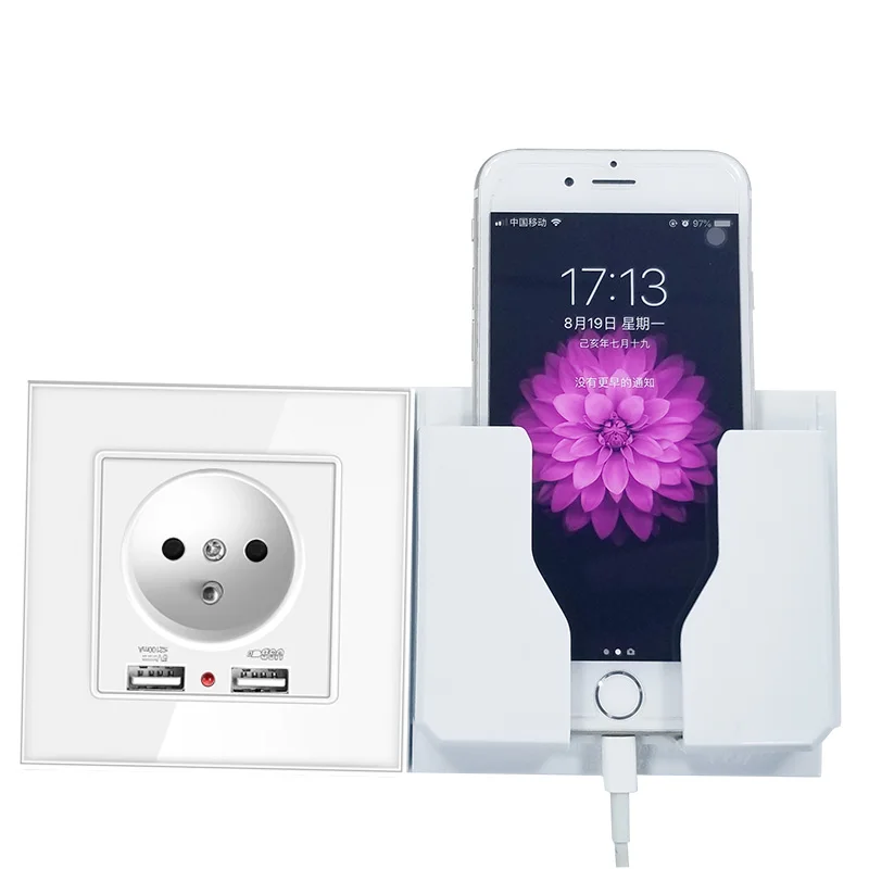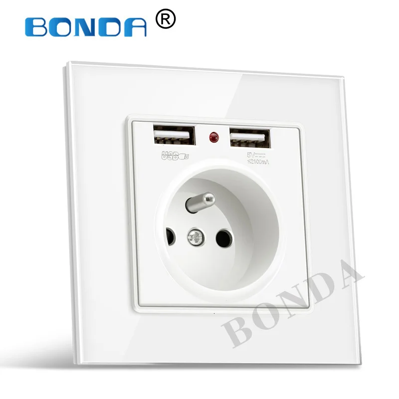 Европейская настенная розетка с usb-разъемом, стеклянная настенная розетка с зарядным устройством 2 А USB, электрическая настенная розетка 16 А, 2100 мА