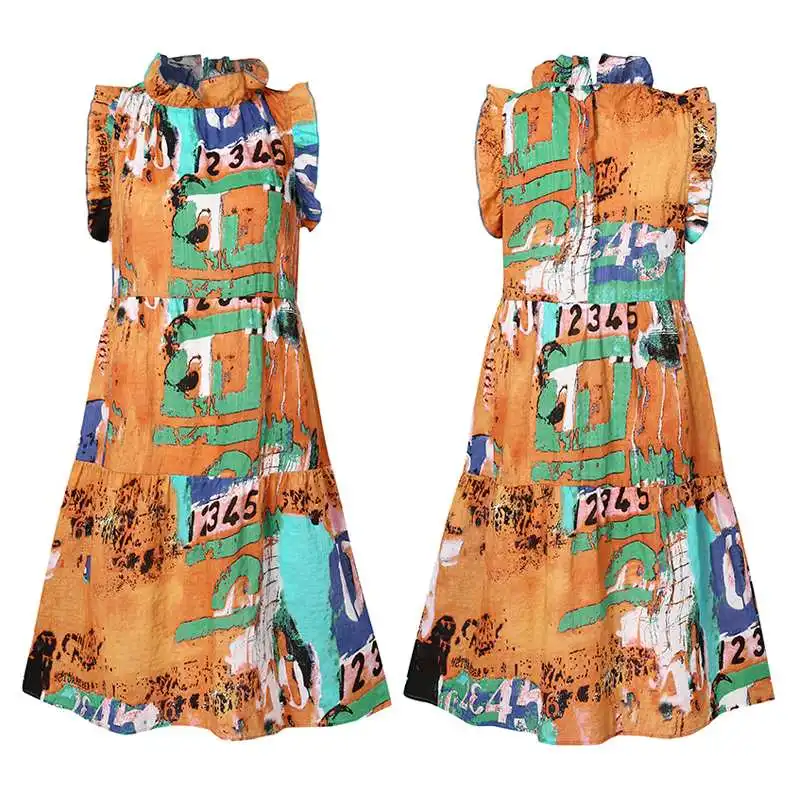 Сарафан женский, без рукавов, с оборками, с винтажным принтом, лето 2021