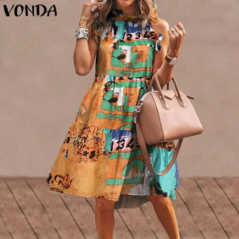 Летний Пляжный сарафан VONDA 2022, женское повседневное свободное о...