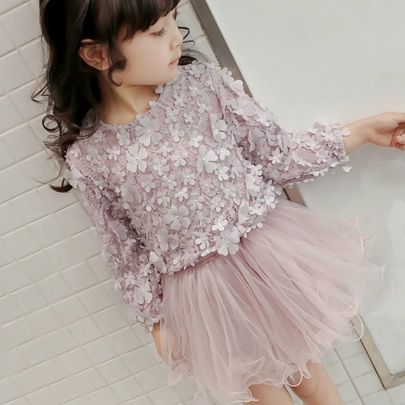 Вечерние платья принцессы pudcoco для девочек, детский кружевной Цветочный лоскутный тюлевый сарафан, модное осеннее бальное платье с длинным рукавом