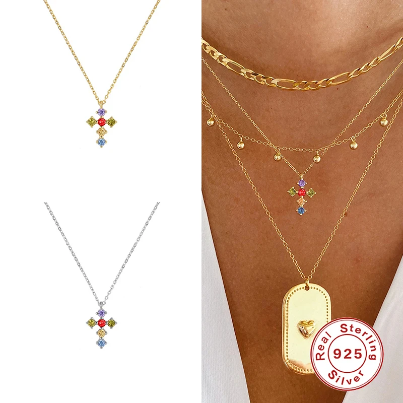 CANNER ожерелье из стерлингового серебра 925 пробы для женщин 2020 ювелирные изделия Необычные алмазные крест цепь цветов радуги 18k Колье Ожерелье Bijoux воротник