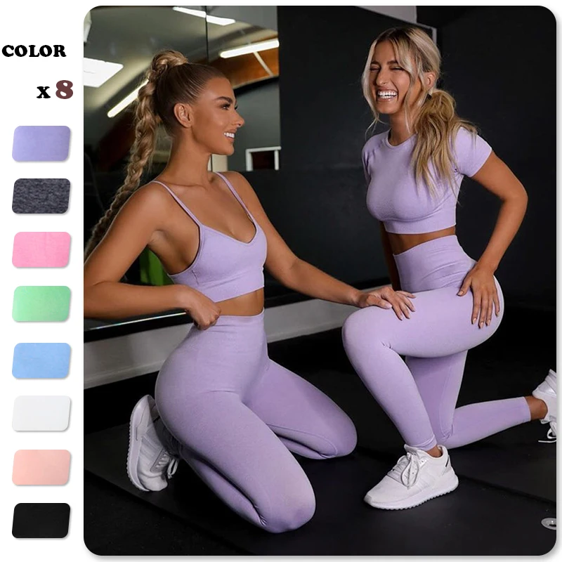 Бесшовный Женский комплект для йоги, тренировочные рубашки, спортивные штаны, бюстгальтер, спортивные костюмы, шорты для фитнеса, короткий топ с высокой талией, леггинсы для бега, спортивные комплекты