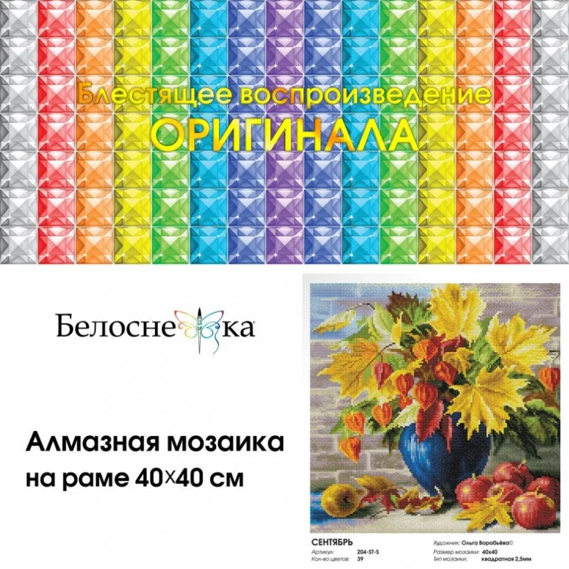"Сентябрь" Алмазная мозаика на подрамнике 40*40. Белоснежка. 204-ST-S