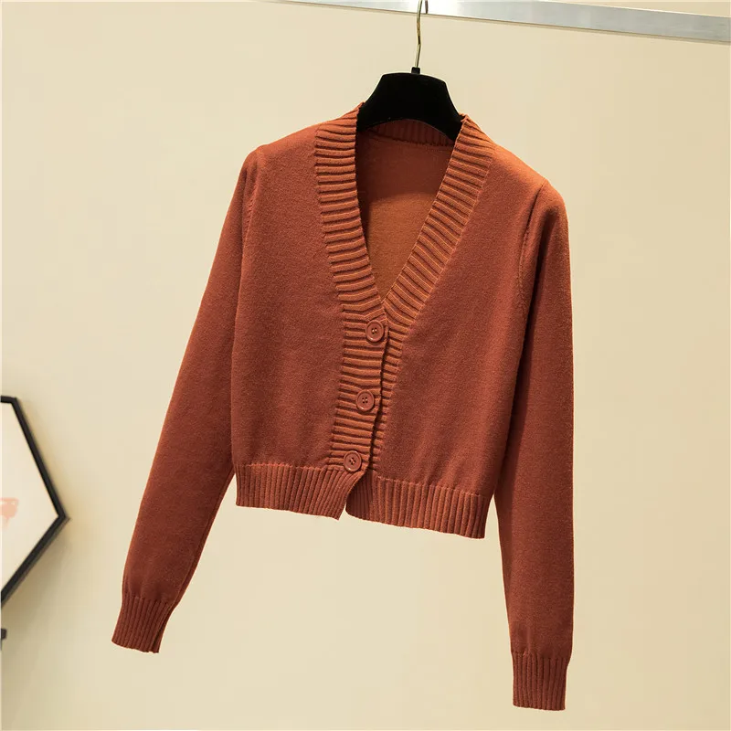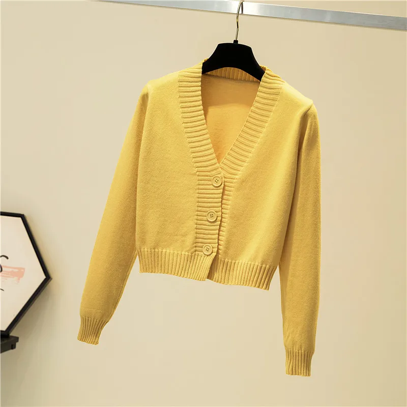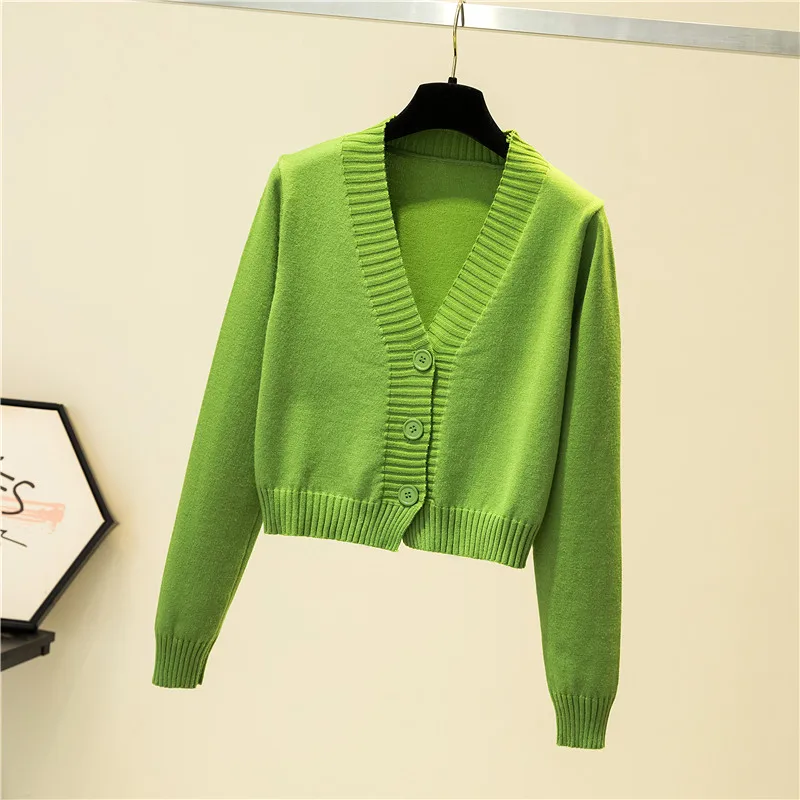 Женский укороченный Кардиган с длинным рукавом, V-образным вырезом