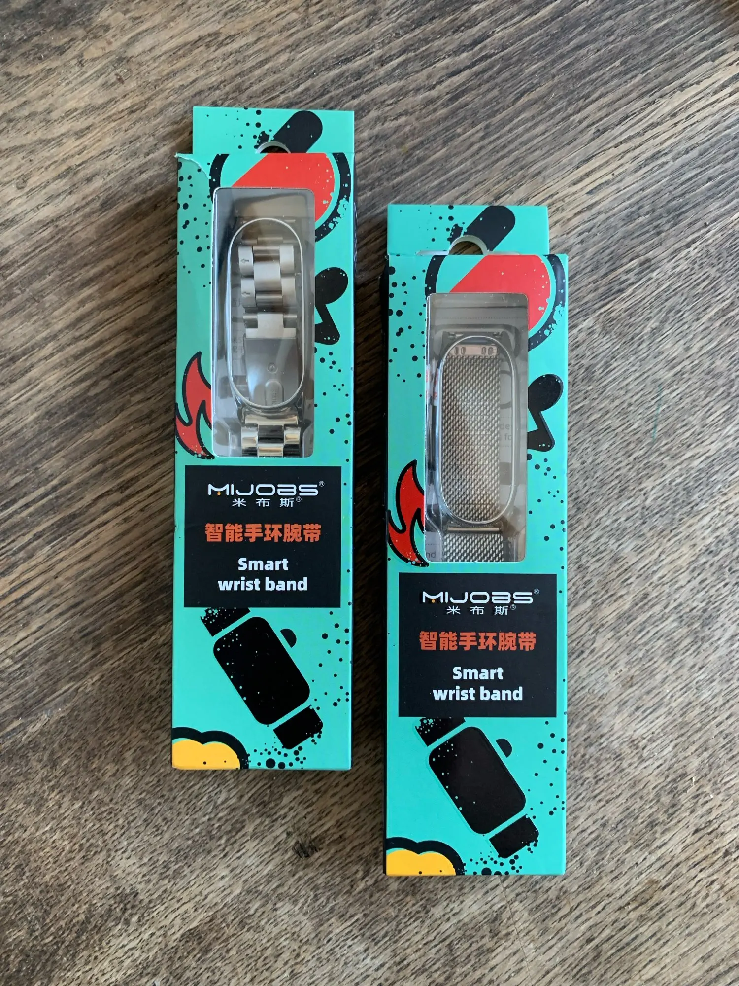 Два браслета милые и изящные в деталях. Быстрая доставка, изящная упаковка радует поставляется 4 адаптера для различных моделей браслетов. В коробке также имеется полезный инструмент для удаления штифтов браслета. Необходимо быть внимательными при надевании браслетов с застежкой: если датчик объектива слишком тугой, если он слишком тугой, чтобы не затянуть большую часть руки. Все сделано хорошо, когда служит более формальный стиль, чем резиновый браслет