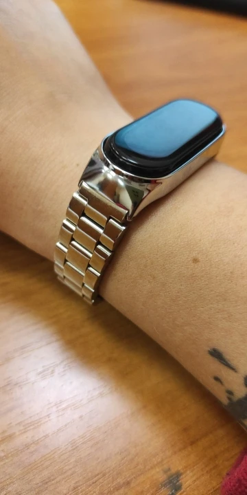 Отличный ремешок! В Краснодар пришёл за 4 дня. Всё в целости и сохранности. В комплекте есть резинки для Mi Band 3,4,5 и инструмент для регулировки ремешка (снятия звеньев).